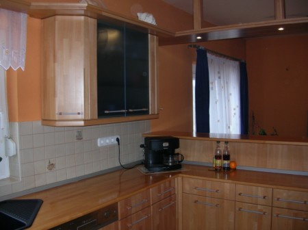 Cimkék: beépített konyhagép, belső világítás, bükk konyhabútor, egyedi fogantyú, konyha, konyhabútor, savmart üvegajtó, világító párkányzat